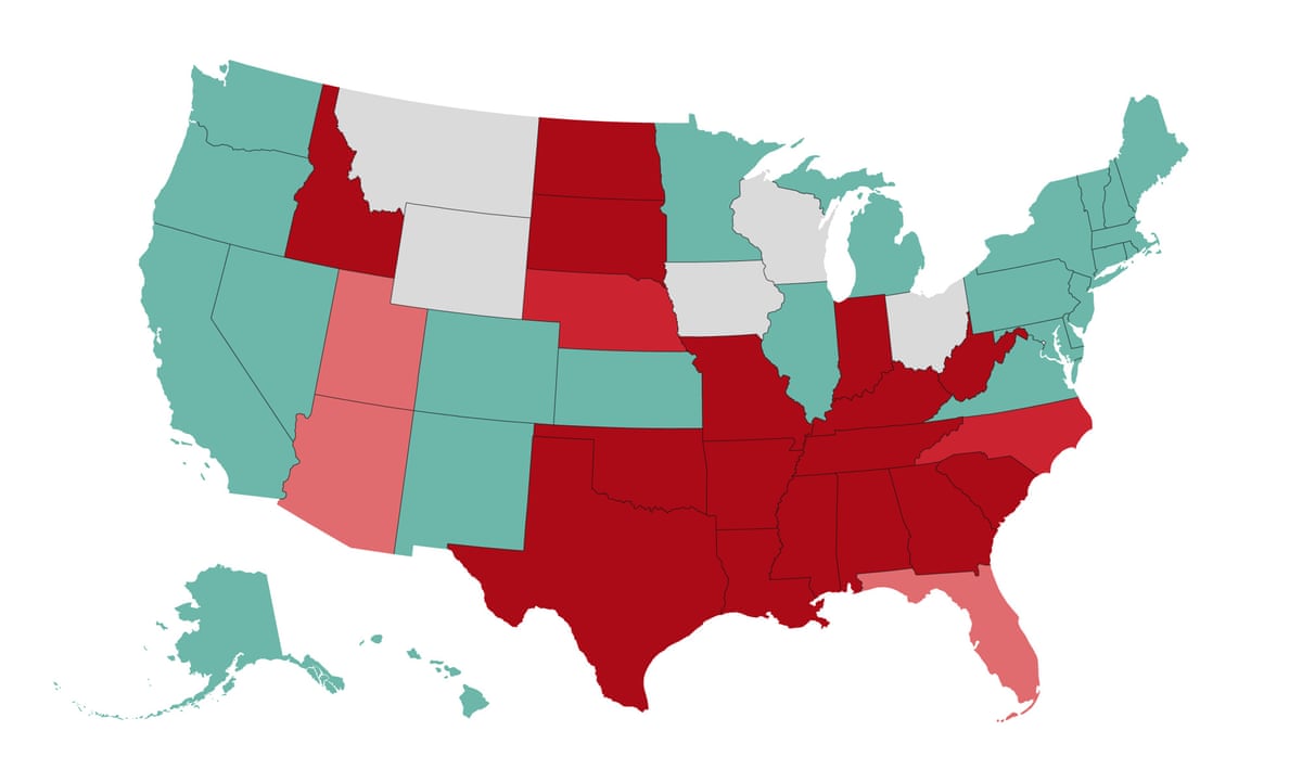 Source : www.theguardian.comMap: How abortion access has shifted in year since Roe v. Wade was